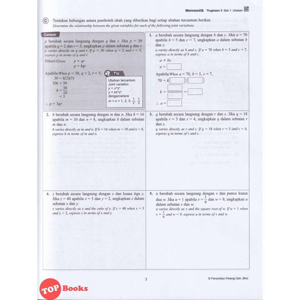 Bab 1 ubahan matematik tingkatan 5. Bab 1, 2, 3, 4, 5, 6, 7, 8. Nyatakan hubungan dalam bentuk ubahan. Latih kendiri 1.1d bab 1 ubahan.